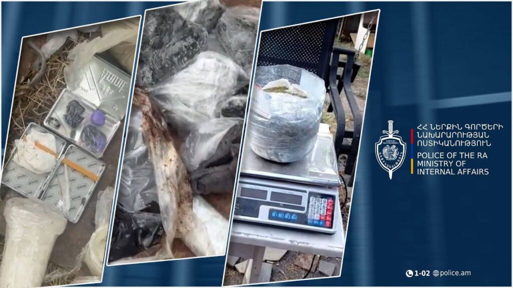 Հայտնաբերվեցին տարատեսակ թմրամիջոցների առանձնապես խոշոր չափերով զանգվածներ, մասնավորապես՝ 3 կիլոգրամ 742 գրամ ափիոն, 1 կիլոգրամ 850 գրամ մարիխուանա, 596 գրամ մեթամֆետամին, 256 գրամ հաշիշ ու մեթադոնի 10 հաբ, նաև`գնդացրի երկու փամփուշտ: