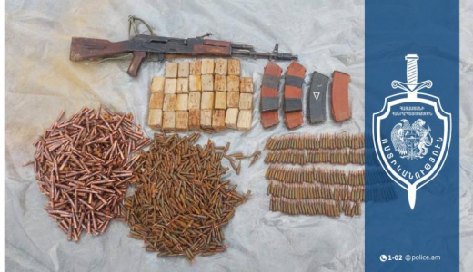 Համայնքային ոստիկաններն ու պարեկները նշված վայրում հայտնաբերել են «Կալաշնիկովի» ինքնաձիգ, ինքնաձիգի դատարկ 6 պահեստատուփ, 5․45 մմ և 7.62 մմ տրամաչափերի 2900-ից ավելի փամփուշտ։