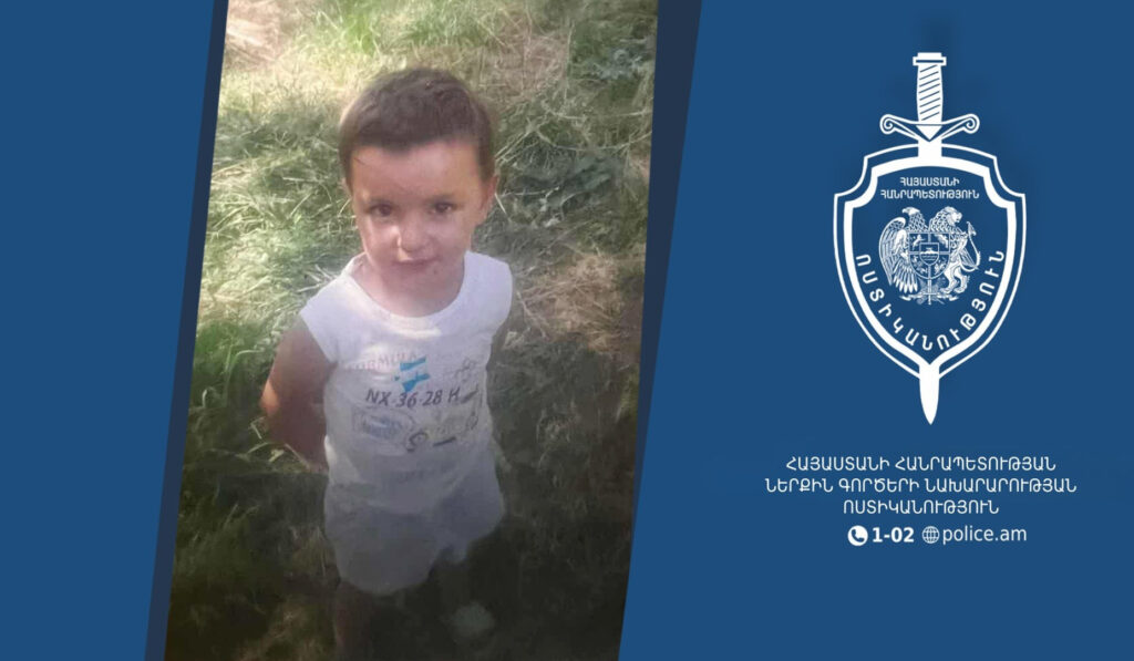 Ավելի վաղ հայտնել էինք, որ հոկտեմբերի 27–ին, ժամը 18.00-ի սահմաններում, ՆԳՆ ոստիկանության օպերատիվ կառավարման կենտրոն հաղորդում է ստացվել, որ Գեղարքունիքի մարզի Ծափաթաղ գյուղի բնակիչ 2022 թվականին ծնված Տիգրան Օվանեսովը ժամը 16:30-ի սահմաններում կորել է։