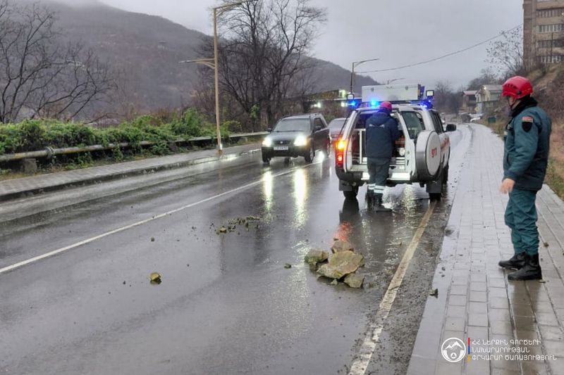 Փրկարարները ճանապարհի երթևեկելի հատվածից հեռացրել են թափված քարերը։