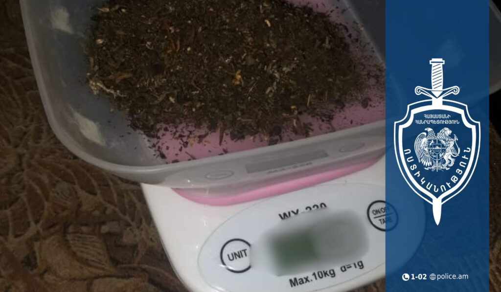 Սիս մեկնած համայնքային ոստիկանները 52-ամյա տղամարդու տան հյուրասենյակի ակնհայտ տեսանելի հատվածում նկատել են կանեփանման զանգված։ Տղամարդը ձերբակալվել և տեղափոխվել է Համայնքային ոստիկանության Մասիսի բաժին։