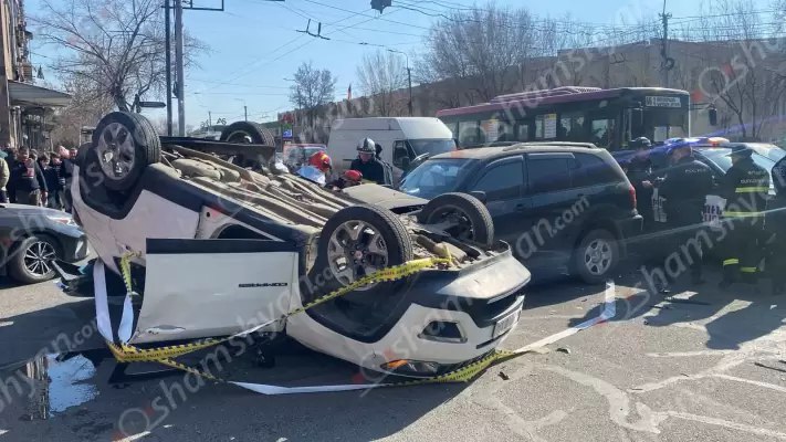 Ֆոտոլրագրողը հայտնում է, որ բախման հետևանքով «Jeep Compass»-ը գլխիվայր շրջվել է։