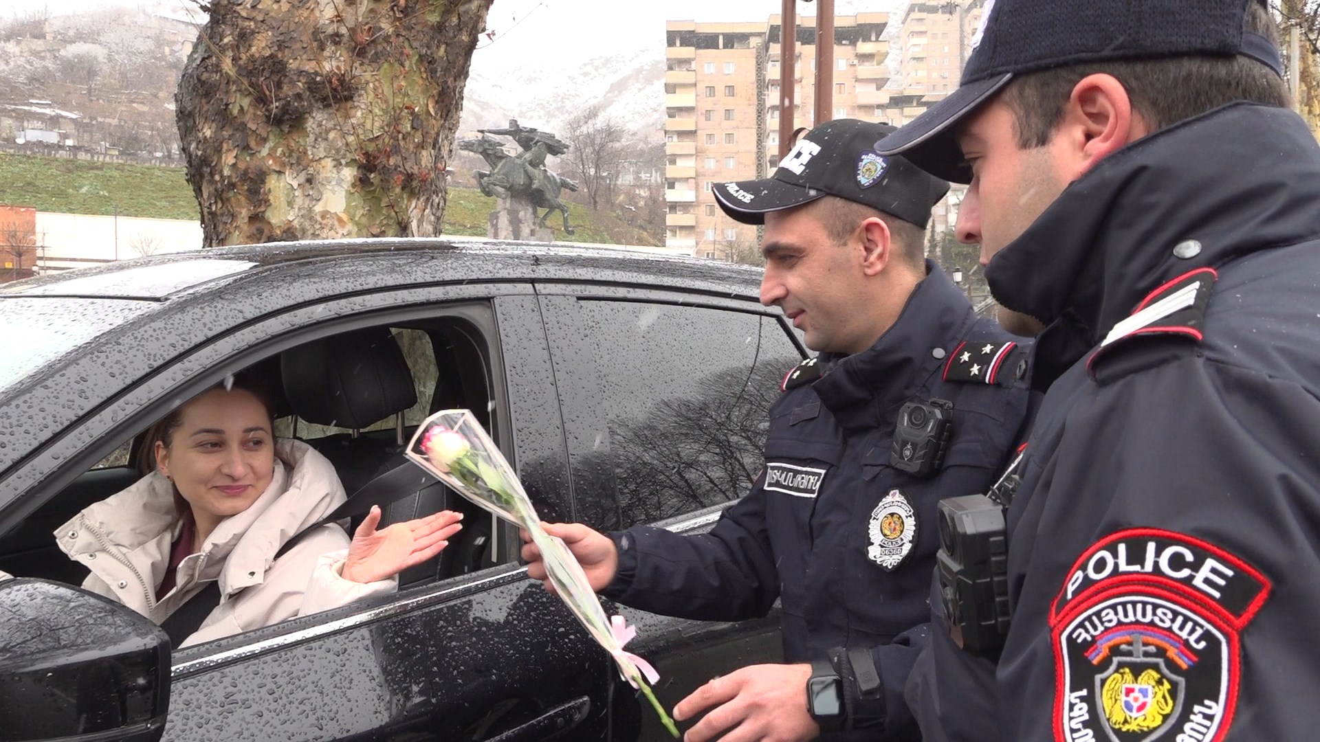 Սյունիքի պարեկները կանգնեցնում են կին վարորդներին այս անգամ ոչ թե տուգանելու, այլ հաճելի անակնկալ մատուցելու համար։ Կանանց տոնի առթիվ, նրանք շնորհավորանքներ ու ծաղիկներ ստացան: