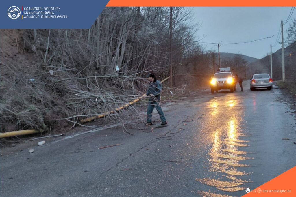 Փրկարարները մասնատել են ծառերի ճյուղերը, հեռացրել երթևեկելի հատվածից․ երթևեկությունը վերականգնվել է։