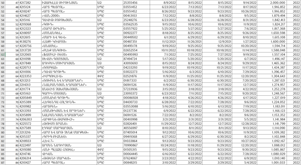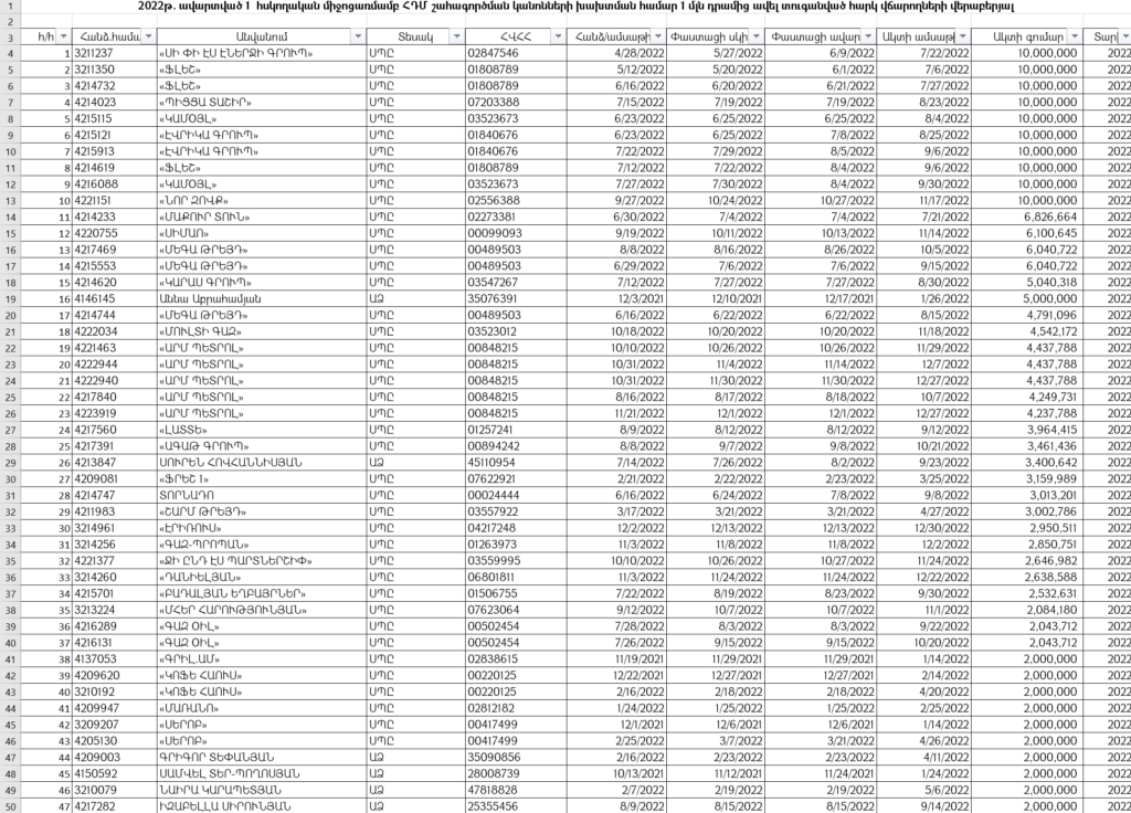 Կոմիտեն հրապարակում է ՀԴՄ կանոնների խախտում թույլ տված և 1 մլն դրամից ավելի գումարով տուգանված հարկ վճարողների ցանկը։
