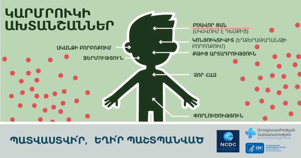 Հիշեցնենք, որ կարմրուկը սուր վիրուսային, խիստ բարձր վարակելիությամբ հիվանդություն է, որը բնորոշվում է ցանային երևույթներով, չոր հազով, ջերմությամբ և այլն: Վարակը փոխանցվում է օդային ճանապարհով։