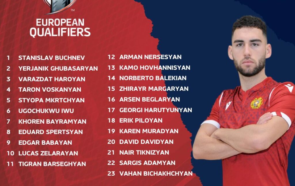 Հայաստանի ֆուտբոլի ֆեդերացիան հրապարակել է Հայաստանի ազգային հավաքականի վերջնական հայտացուցակը Թուրքիայի դեմ խաղում։