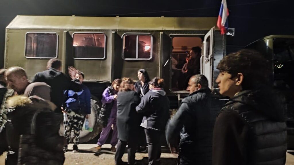 1. Քաղաքացիական խումբը, որը հիմնականում բաղկացած էր կանանցից, ծերերից և երեխաներից, ռուս խաղաղապահների երկու մեքենաներով ճանապարհվել է Հայաստանի Գորիս քաղաքից՝ իրենց ընտանիքների հետ վերամիավորվելու նպատակով։