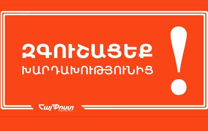 «Կրկին ահազանգեր ենք ստանում, որ ՀայՓոստի անվան և ապրանքային նշանի շահարկմամբ մարդկանցից բանկային տվյալների կորզման փորձեր են արվում: