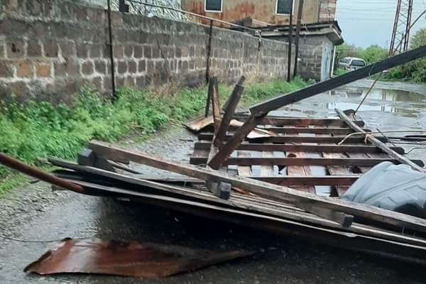 Պարզվել է, որ Ղանդիլյան փողոցի տներից մեկի տանիքը (մոտ 30 քմ) ուժեղ քամուց պոկվել և ընկել է գետնին՝ վնասելով 2 սյուն և գազի խողովակ։