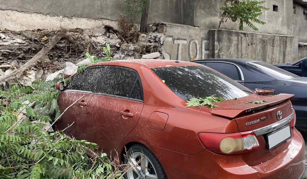 Ուժեղ քամու հետևանքով ծառը շրջվել է ավտոմեքենաների վրա