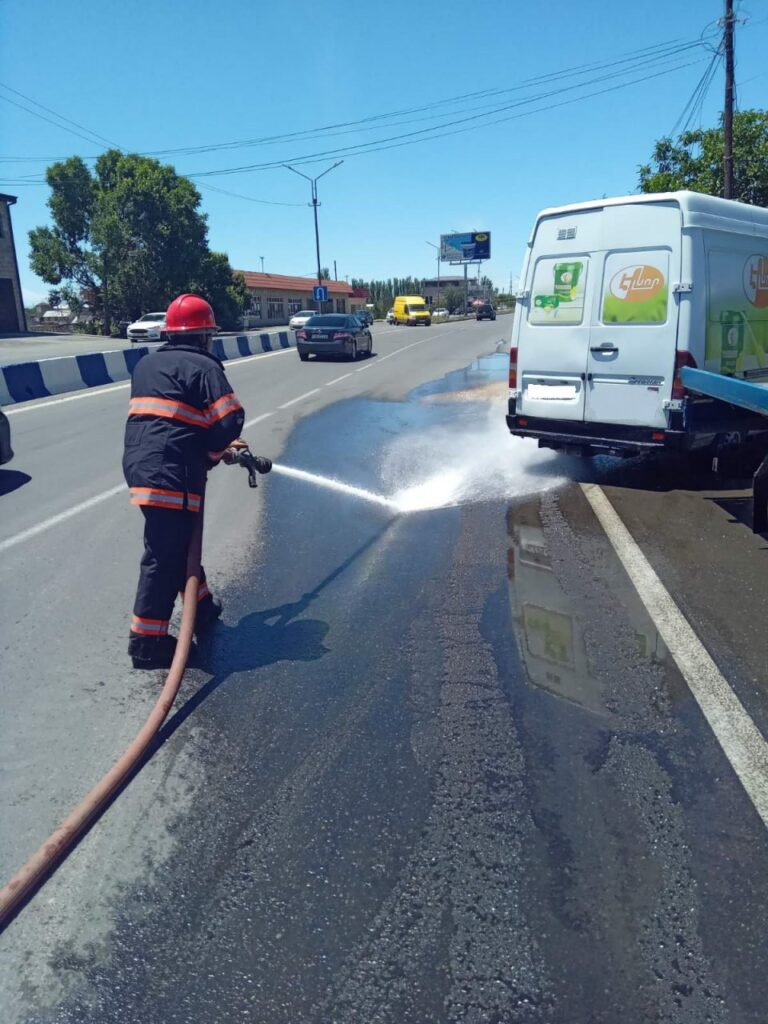 Փրկարարներն ուղղել են «Mercedes Sprinter» մակնիշի ավտոմեքենան և իրականացրել ճանապարհի լվացման աշխատանքներ։