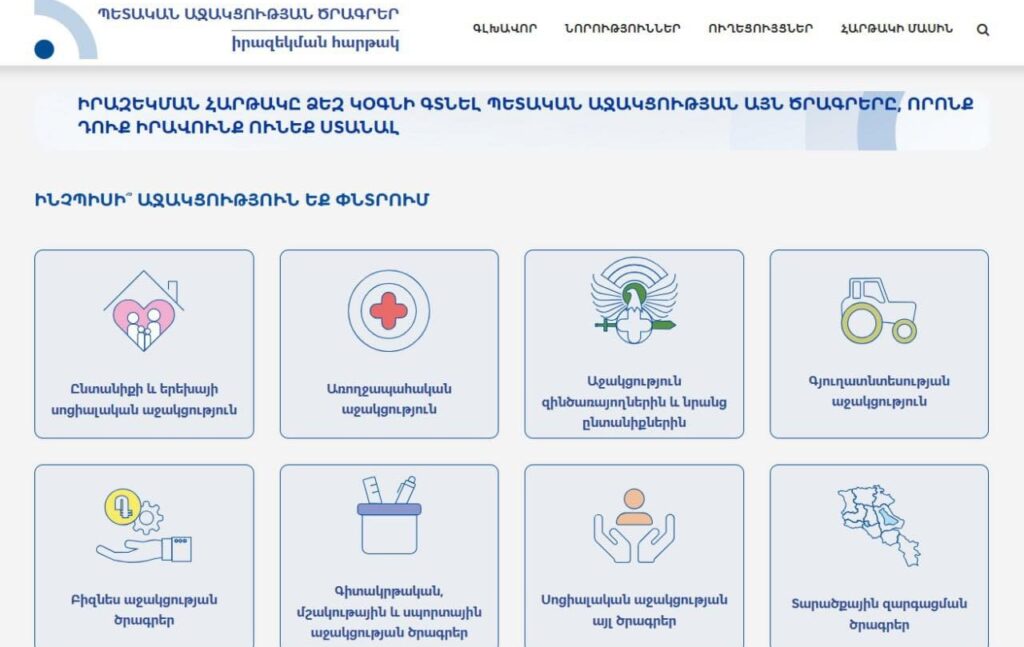 Հարթակը հնարավորություն է տալիս քաղաքացուն մեկ հասցեում հեշտությամբ ծանոթանալ պետաջակցության բոլոր ծրագրերին: