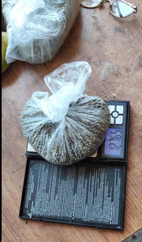 Հայտնաբերվել է նաև 151 և 12,32 գրամ քաշերով դեղնականաչավուն չորացված զանգվածներ, կանեփի բույսի սերմեր, ինչպես նաև՝ երկփողանի հրացան: