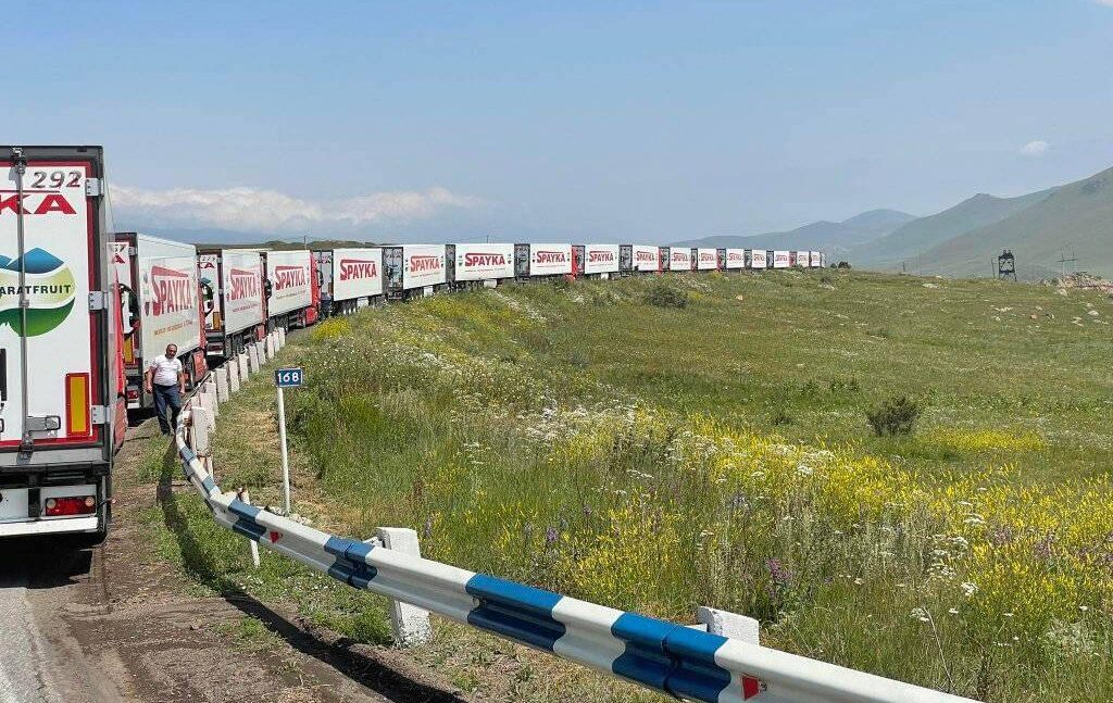 Արցախ մարդասիրական բեռ տեղափոխող բեռնատարները դեռ կանգնած են Հակարիի կամրջի մոտ: