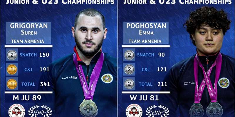 Մինչև 20 տարեկանների պայքարում Եվրոպայի առաջնության հաղթողի կոչմանն արժանացել է Սուրեն Գրիգորյանը (89 կգ)` երկամարտում ցույց տալով 341 կգ արդյունք (150+191): Հրում վարժությունում Գրիգորյանն արժանացել է փոքր ոսկե, իսկ պոկում վարժությունում՝ փոքր արծաթե մեդալների:
