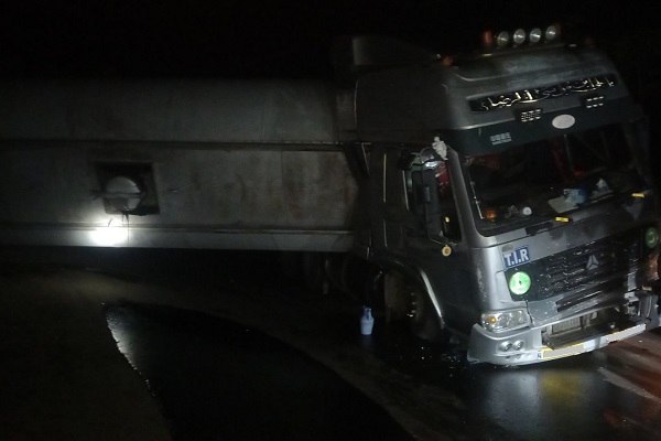 Վթարի հետևանքով բեռնատարի ցիստեռնը (բեռնված 22 տոննա մազութով) կողաշրջվել է։