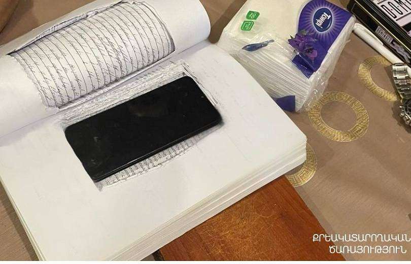 Արդյունքում՝ ընդհանուր օգտագործման պահարանում դրված գրքի մեջ պատրաստված թաքստոցից հայտնաբերվել է բջջային հեռախոս: Փաստի առթիվ նախապատրաստվում են նյութեր: