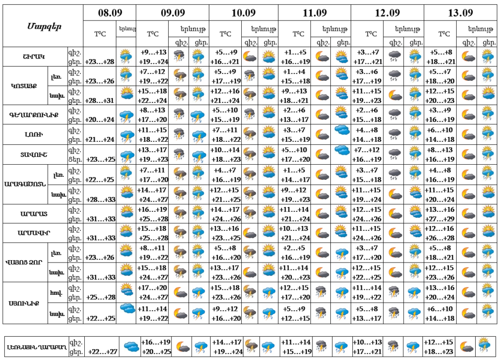 Օդի ջերմաստիճանը սեպտեմբերի 13-16-ը աստիճանաբար կբարձրանա 5-8 աստիճանով։