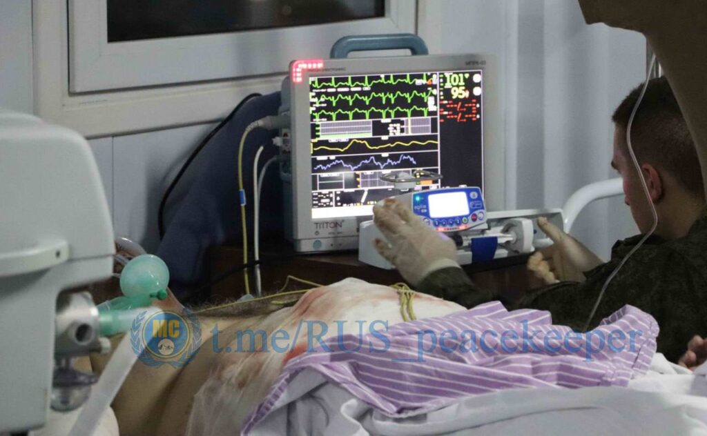 Ռուսական խաղաղապահ զորախմբի բժիշկներն օգնություն են ցուցաբերում Ստեփանակերտում գազալցակայանի պայթյունից տուժածներին։