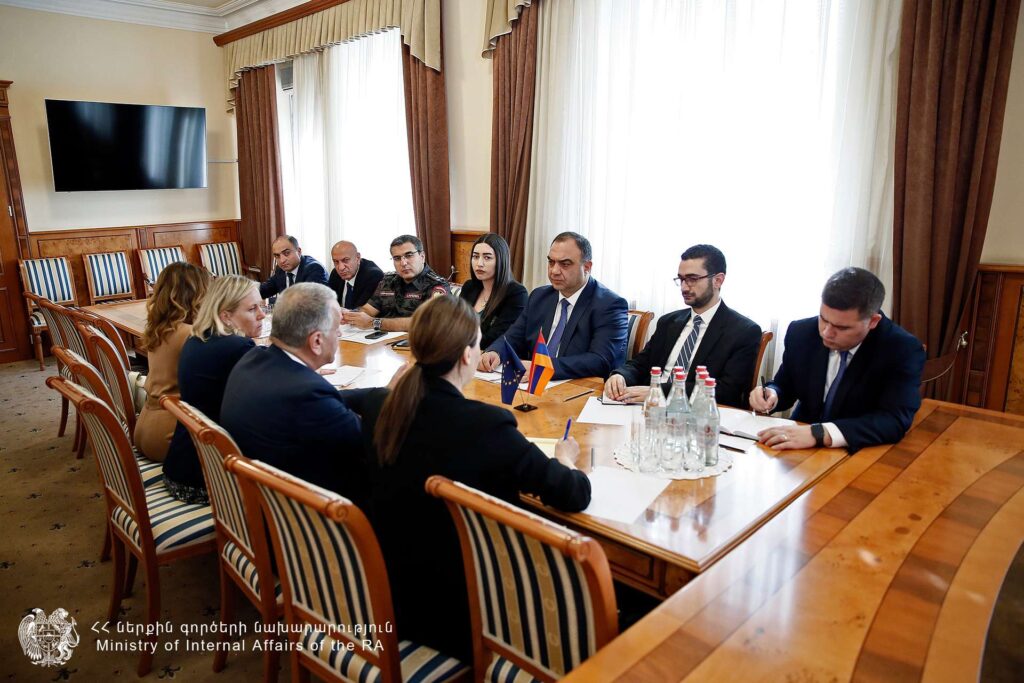 Քննարկվել են նաև նախարարության ենթակա ծառայությունների` քաղաքացիներին մատուցվող ծառայությունների որակի բարելավման, քաղհասարակության հետ փոխգործակցության, պարեկային ծառայության կազմավորման, կանանց ներգրավվածության, ինչպես և փոխադարձ հետաքրքրություն ներկայացնող այլ հարցեր։
