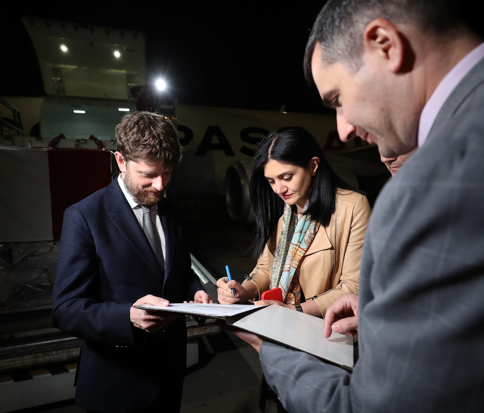 ՀՀ առողջապահության նախարարությունն էլ, տեղեկացնելով, որ մարդասիրական բեռը Ֆրանսիայից հասավ Հայաստան, հայտնում է` Առողջապահության նախարարի առաջին տեղակալ Լենա Նանուշյանը և ՀՀ-ում Ֆրանսիայի դեսպան Օլիվիե Դըկոտինյին «Զվարթնոց» միջազգային օդանավակայանում ընդունել են 5 տոննա բեռը: