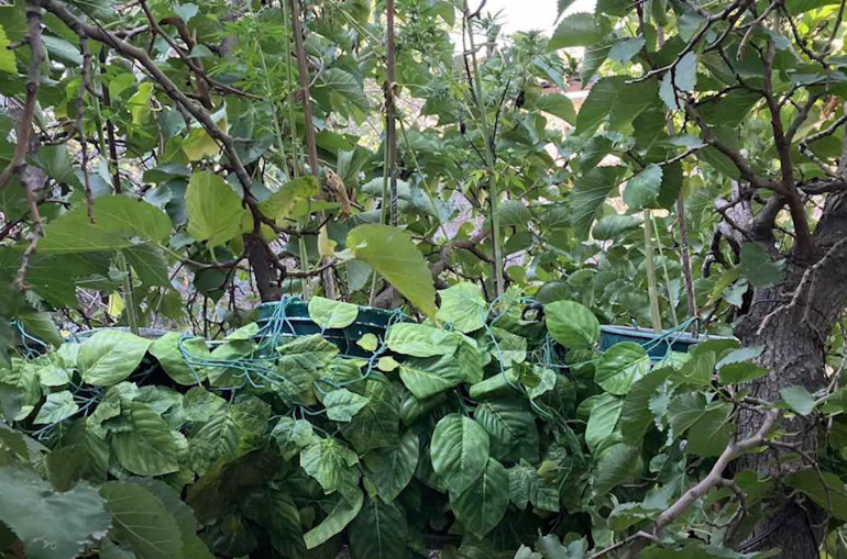 Հաջորդ դեպքում քրեական հետախույզները սեպտեմբերի 27-ին ստուգման նպատակով այցելել են Վաղարշապատի 51-ամյա մի բնակչի տուն: Տնամերձ հողամասի թթենու վրա նրանք նկատել են դույլերով քողարկված կանեփի բույսեր: