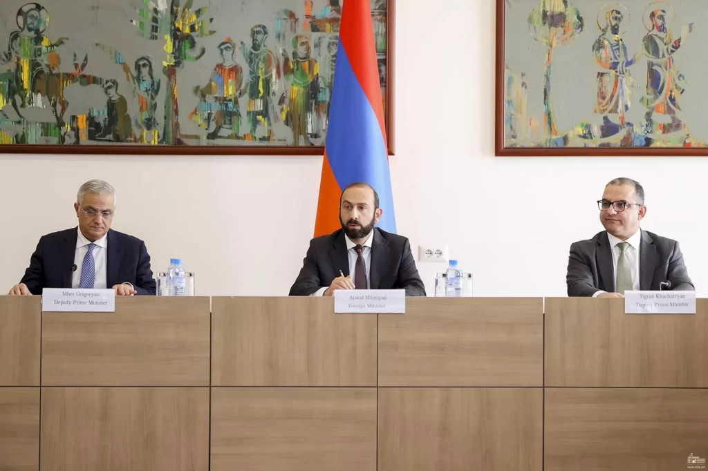 Հոկտեմբերի 2-ին ՀՀ արտաքին գործերի նախարարությունում տեղի է ունեցել հանդիպում Հայաստանում հավատարմագրված դիվանագիտական ներկայացուցչությունների ղեկավարների և միջազգային կառույցների ներկայացուցիչների հետ: Հանդիպումը համակարգել է ԱԳ նախարար Արարատ Միրզոյանը, մասնակցել և խոսքով հանդես են եկել ՀՀ փոխվարչապետեր Տիգրան Խաչատրյանը և Մհեր Գրիգորյանը: Այս մասին հայտնում են ՀՀ արտաքին գործերի նախարարությունից։