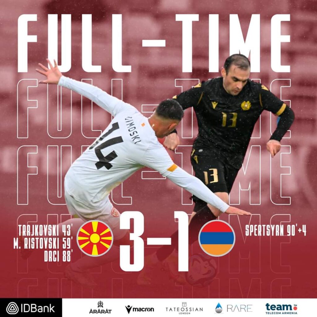 Հայաստանի ազգային հավաքականը Ստրումիցայի «Բլագոյ Իստատով» ստադիոնում այսօր ընկերական խաղում մրցեց Հյուսիսային Մակեդոնիայի հետ։ Հանդիպումն ավարտվեց տանտերերի հաղթանակով՝ 3-1 հաշվով։