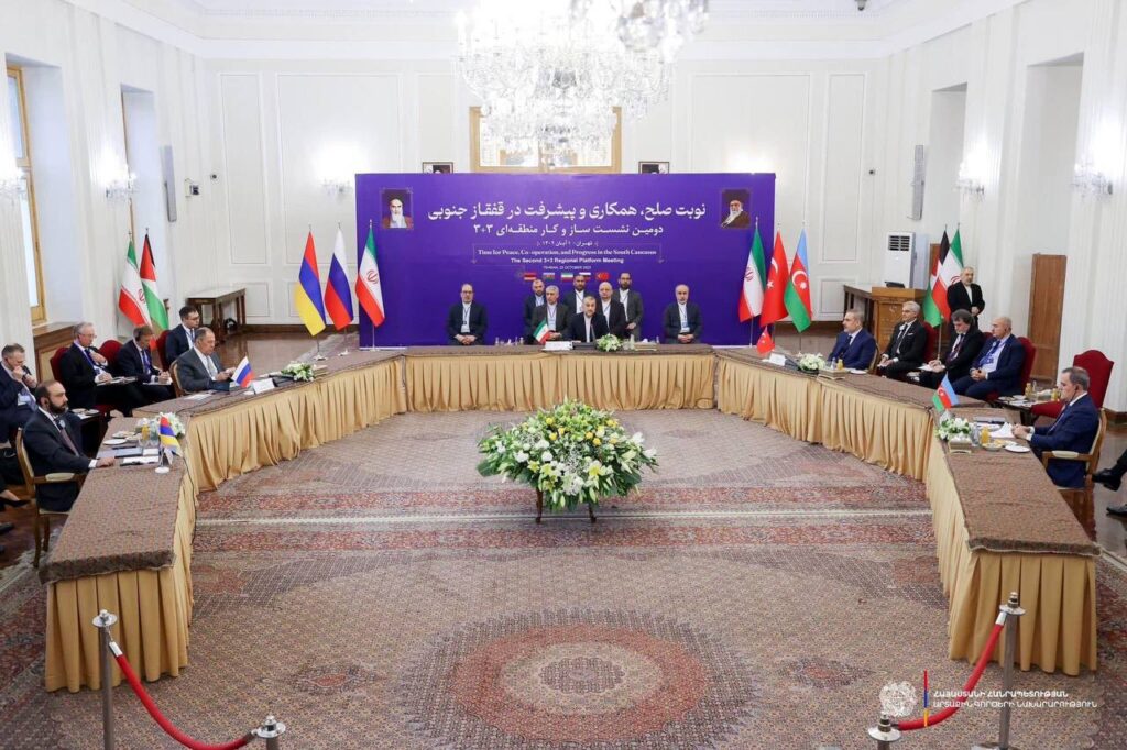 Հիշեցնենք՝ այսօր Հայաստանի, Իրանի, Ռուսաստանի, Ադրբեջանի և Թուրքիայի արտաքին գործերի նախարարները Թեհրանում հանդիպել են «3+3» ձևաչափի շրջանակում`քննարկելու հարավկովկասյան տարածաշրջանի խնդիրները և փորձելու ընդլայնել տարածաշրջանային համագործակցությունը (քաղաքական, տնտեսական, անվտանգության, տարանցիկ, էներգետիկ և այլն հարցերի շուրջ):