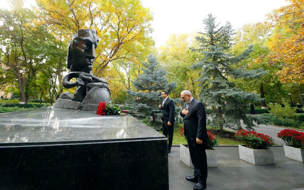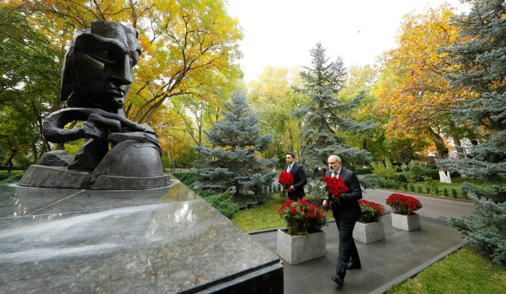 Վարչապետ Նիկոլ Փաշինյանն Ազգային ժողովի նախագահ Ալեն Սիմոնյանի հետ ծաղիկներ է խոնարհել ԱԺ այգում կանգնեցված հուշակոթողի մոտ և հարգանքի տուրք մատուցել 1999 թվականի հոկտեմբերի 27-ի ոճրագործության զոհ դարձած պետական և քաղաքական գործիչների հիշատակին: