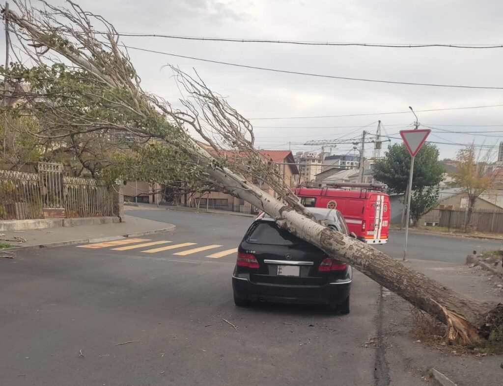 Նոյեմբերի 19-ին, ժամը 11։56-ին Ճգնաժամային կառավարման ազգային կենտրոն ահազանգ է ստացվել, որ Սոսեի փողոցի թիվ 28/2 շենքի մոտակայքում քամու հետևանքով ծառը շրջվել է կայանած ավտոմեքենայի վրա և հենվել էլեկտրական լարերին․ անհրաժեշտ է փրկարարների օգնությունը։
