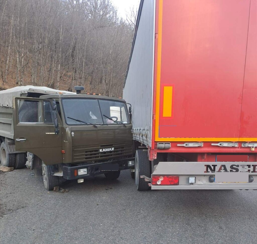 Իրար են բախվել երկու բեռնատար՝ ճանապարհը դարձնելով միակողմանի երթևեկելի։