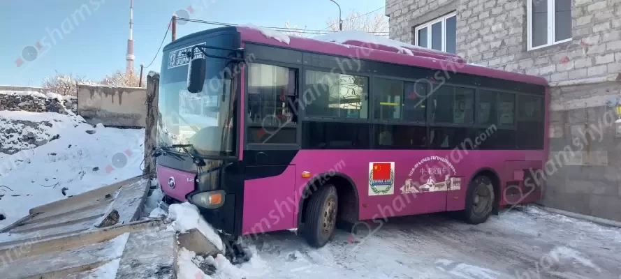Ավտոբուսը բախվել է գազի խողովակին, ապա բնակիչի տան քարե պարսպին ու երկաթե ճաղավանդակին ու ամբողջությամբ փակել ճանապարհը։