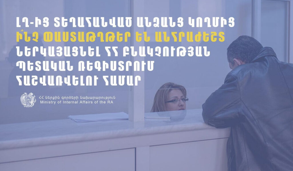 ՀՀ ՆԳ նախարարությունը պարզաբանում է ներկայացրել, թե ԼՂ-ից տեղահանված անձանց կողմից ի՞նչ փաստաթղթեր է անհրաժեշտ ներկայացնել ՀՀ բնակչության պետական ռեգիստրում հաշվառվելու համար: