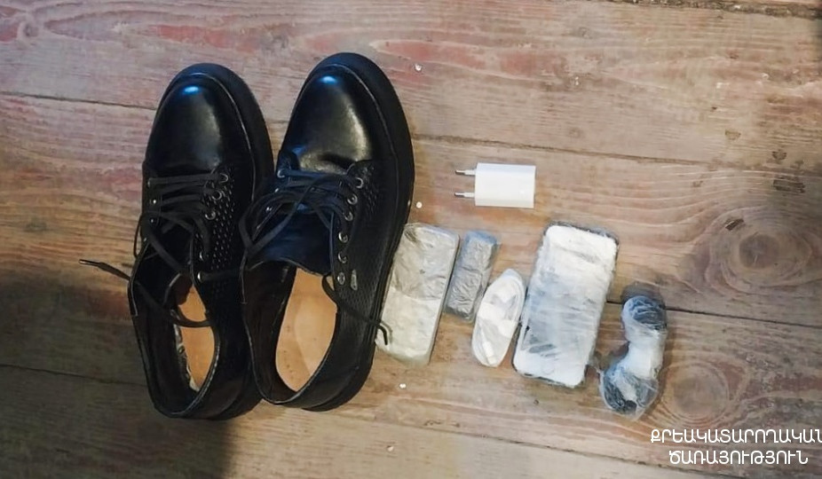 Արդյունքում՝ վերջինիս հագի կոշիկների մեջ պատրաստված թաքստոցներից հայտնաբերվել են 3 բջջային հեռախոս, բջջային հեռախոսի լիցքավորման սարք և USB լարեր։
