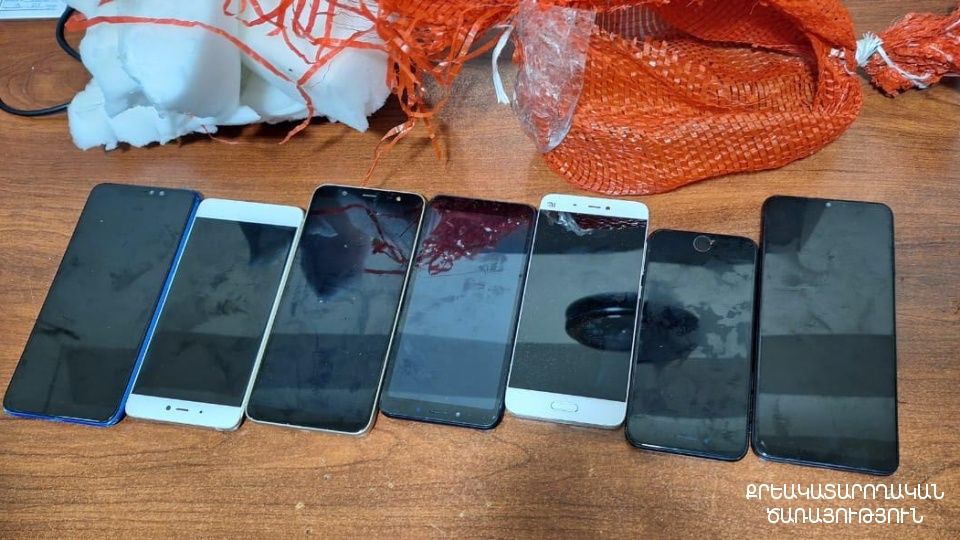 Ահազանգից անմիջապես հետո ծառայողները կատարել են նշված տեղանքի զննություն և հայտնաբերել պոլիէթիլենային ցանցով ամրացված փաթեթ, որում առկա է եղել սպունգներով փաթեթավորված 7 բջջային հեռախոս։Դեպքի առթիվ ձեռնարկվել են համապատասխան միջոցառումներ։