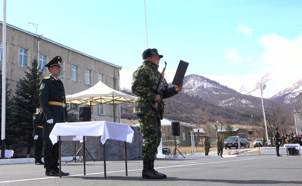 Զորամասի շարահրապարակում՝ մարտական դրոշի ներքո, տեղի ունեցավ խորհրդանշական միջոցառման հիմնական արարողակարգային հատվածը՝ երդման հանդիսավոր արարողությունը: Նորակոչիկներն ընթերցեցին զինվորական երդման տեքստը, հրամանատարների և ծնողների առաջ երդվեցին անմնացորդ նվիրումով, հպարտությամբ և անձնվիրաբար ծառայել հայրենիքին, պատվով պաշտպանել երկրի սահմանները, անվերապահորեն կատարել վերադասի հրամանները` հավաստիացնելով, որ ամեն ինչ անելու են պետական սահմանի անվտանգությունն ապահովելու համար: