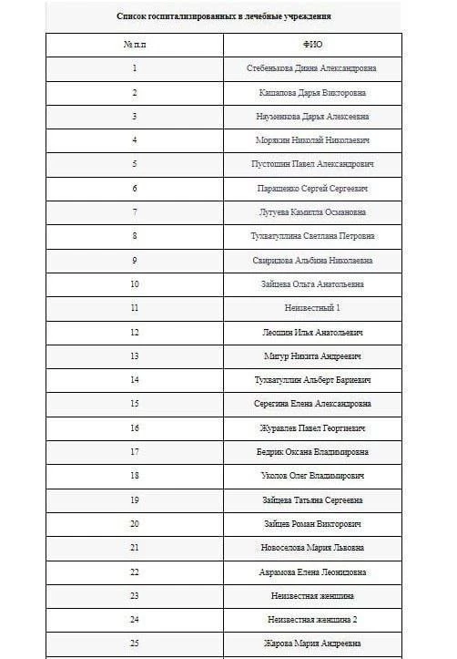 ՌԴ ԱԻՆ-ը հրապարակել է Մոսկվայի ժամանակով 9-ի դրությամբ Կրոկուսում տեղի ունեցած ահաբեկչությունից հետո հոսպիտալացված 107 մարդու անուն պարունակող ցուցակը։