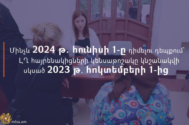 Մինչև 2024 թ․ հունիսի 1-ը դիմելու դեպքում՝ ԼՂ-ից բռնի տեղահանված անձանց կենսաթոշակը կնշանակվի և գումարը կհաշվարկվի սկսած 2023 թ. հոկտեմբերի 1-ից։ Այս մասին հայտնում են ՀՀ ԱՍՀՆ-ից։