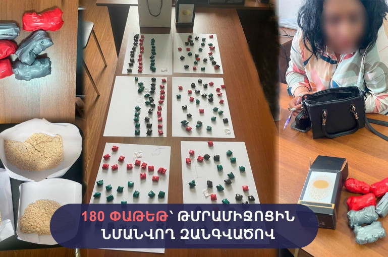 «Արմավիր» ՔԿՀ-ի դատապարտյալին հանձնուք բերած կնոջ մոտից հայտնաբերվել է աննախադեպ քանակի՝ 180 հատ փաթեթ՝ հերոին տեսակի թմրամիջոցին նմանվող զանգվածներով։
