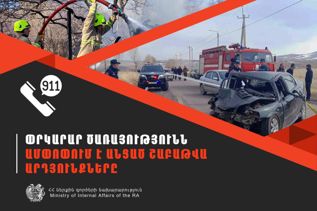 Ապրիլի 8-ից 14-ը ՆԳՆ ՓԾ ճգնաժամային կառավարման ազգային կենտրոնում գրանցվել է 471 դեպք, որից 139-ը՝ արտակարգ:
