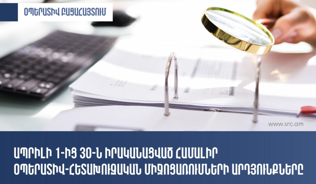 ՊԵԿ-ը ներկայացրել է ապրիլի 1-ից 30-ը ՊԵԿ հետաքննության և օպերատիվ հետախուզության վարչության իրականացրած հարկային իրավախախտումների կանխման, խափանման և բացահայտման ուղղությամբ համալիր օպերատիվ-հետախուզական միջոցառումների արդյունքները:
