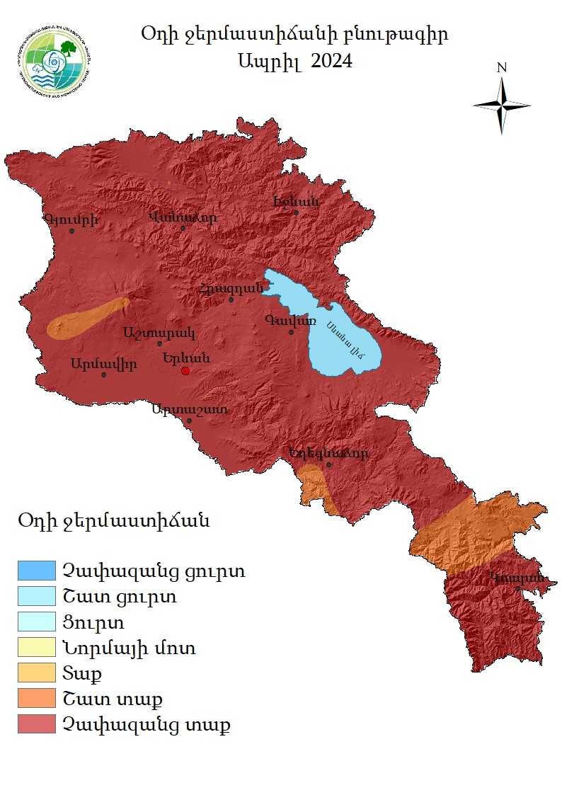 Հայաստանի ամսական միջին ջերմաստիճանը կազմեց 9․4°C, որը 4․5°C-ով գերազանցեց ապրիլի ամսական նորման (4․9°C)։