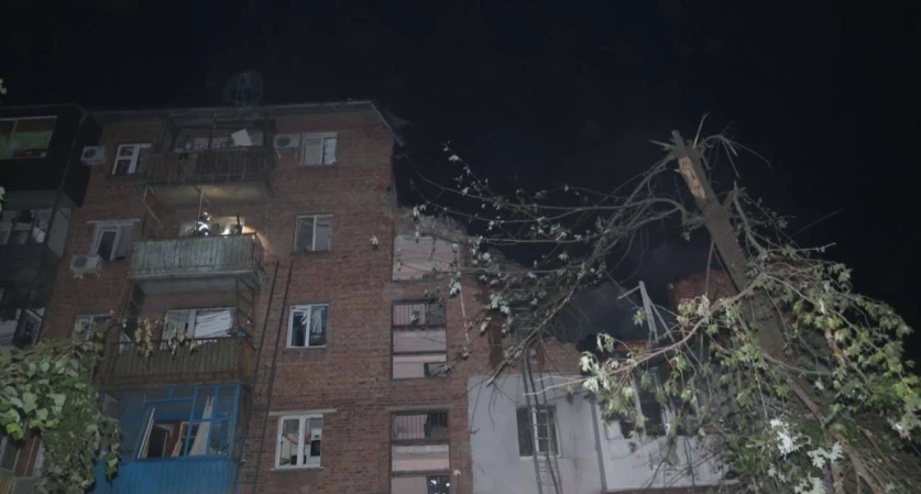 Նշվում է, որ հրթիռները հարվածել են հինգ հարկանի բնակելի շենքի, եռահարկ շենքի խանութի և կարի գործարանի։