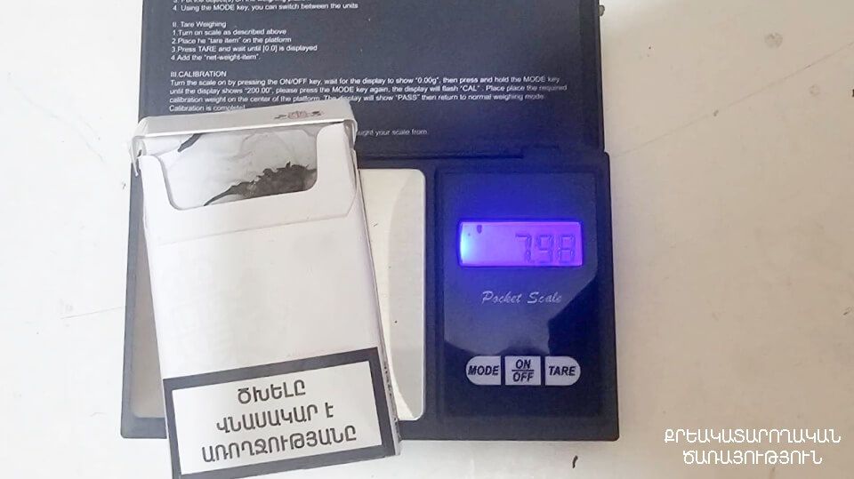 ՀՀ ԱՆ «Գորիս» քրեակատարողական հիմնարկի անվտանգության ապահովման բաժնի ծառայողները հունիսի 5-ին՝ ժամը 15։25-ի սահմաններում, զննության են ենթարկել կալանավորված անձ Տ․Խ․-ի անվամբ քաղաքացի Ն․Ա․-ի կողմից բերված հանձնուքը։ Հանձնուքում առկա ծխախոտի տուփի միջից հայտնաբերվել է մարիխուանա տեսակի թմրամիջոցին նմանվող, դեղնականաչավուն, բուսական զանգված: