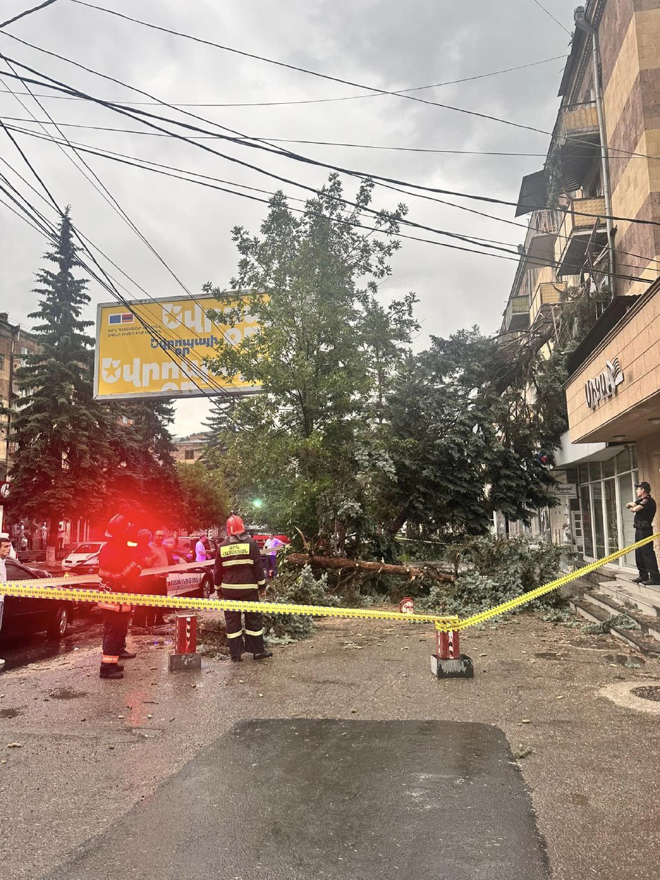 Դեպքի վայր են մեկնել ՆԳՆ ՓԾ մարզային և Երևան քաղաքի փրկարարական վարչությունների հրշեջ-փրկարարական ջոկատներից մարտական հաշվարկներ, Հատուկ նշանակության փրկարարական աշխատանքների իրականացման կենտրոնի փրկարարական խումբը։ Փրկարարներն իրականացնում են տապալված ծառերի մասնատման և հեռացման, թիթեղների ամրացման և ապամոնտաժման աշխատանքներ։