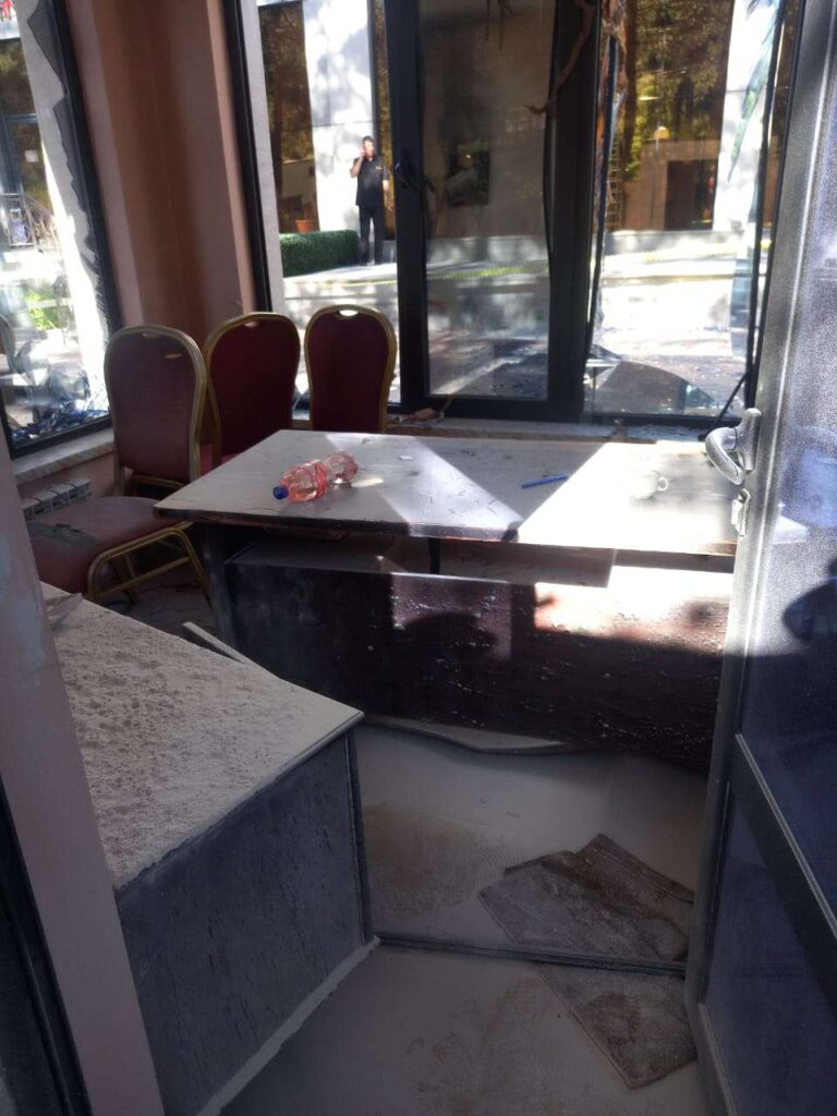 Պարզվել է, որ պայթյուն է տեղի ունեցել մոտ 9 քմ մակերեսով հսկիչ-անցագրային կետում, ինչի հետևանքով վնասվել է 6 պատուհան և գույքը՝ մասամբ։