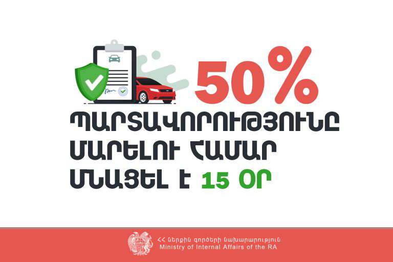 Ավարտին է մոտենում մինչև ապրիլի 5-ը կատարված իրավախախտումների շրջանակում գոյացած պարտավորությունները 50 տոկոս նվազ կիրառման բոնուսային բաղադրիչով մարելու հնարավորությունից օգտվելու ժամկետը։