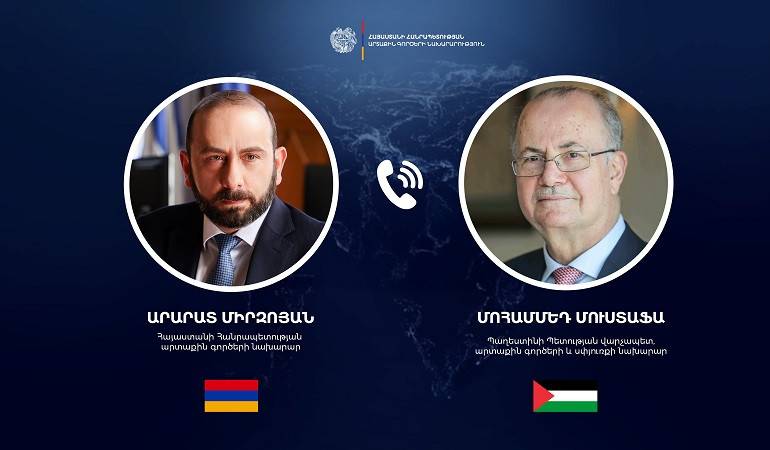 Հունիսի 24-ին ՀՀ արտաքին գործերի նախարար Արարատ Միրզոյանը հեռախոսազրույց է ունեցել Պաղեստինի Պետության վարչապետ, արտաքին գործերի և սփյուռքի նախարար Մոհամմեդ Մուստաֆայի հետ։